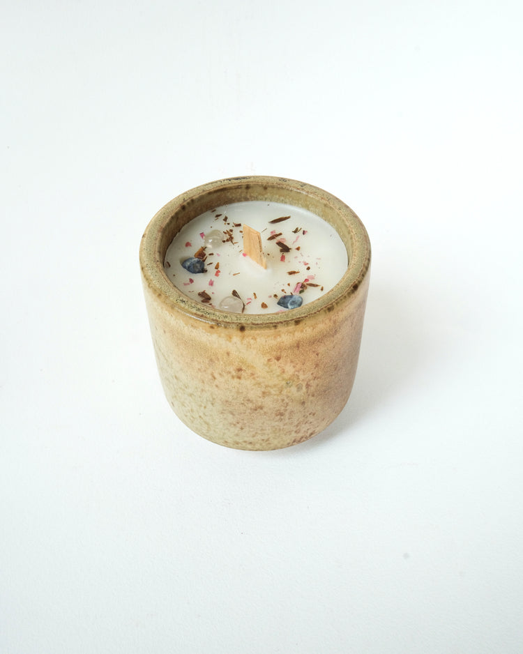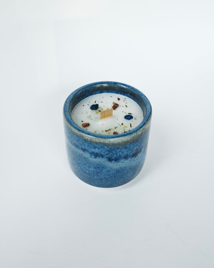 Handcrafted soy wax candle. The pottery is fired in brick kilns at over 1,200°C (2,000°F). This process involves artisans using clay, minerals, and fire to transform them into this piece, a beautiful reflection of the expression and technique of an ancient tradition.